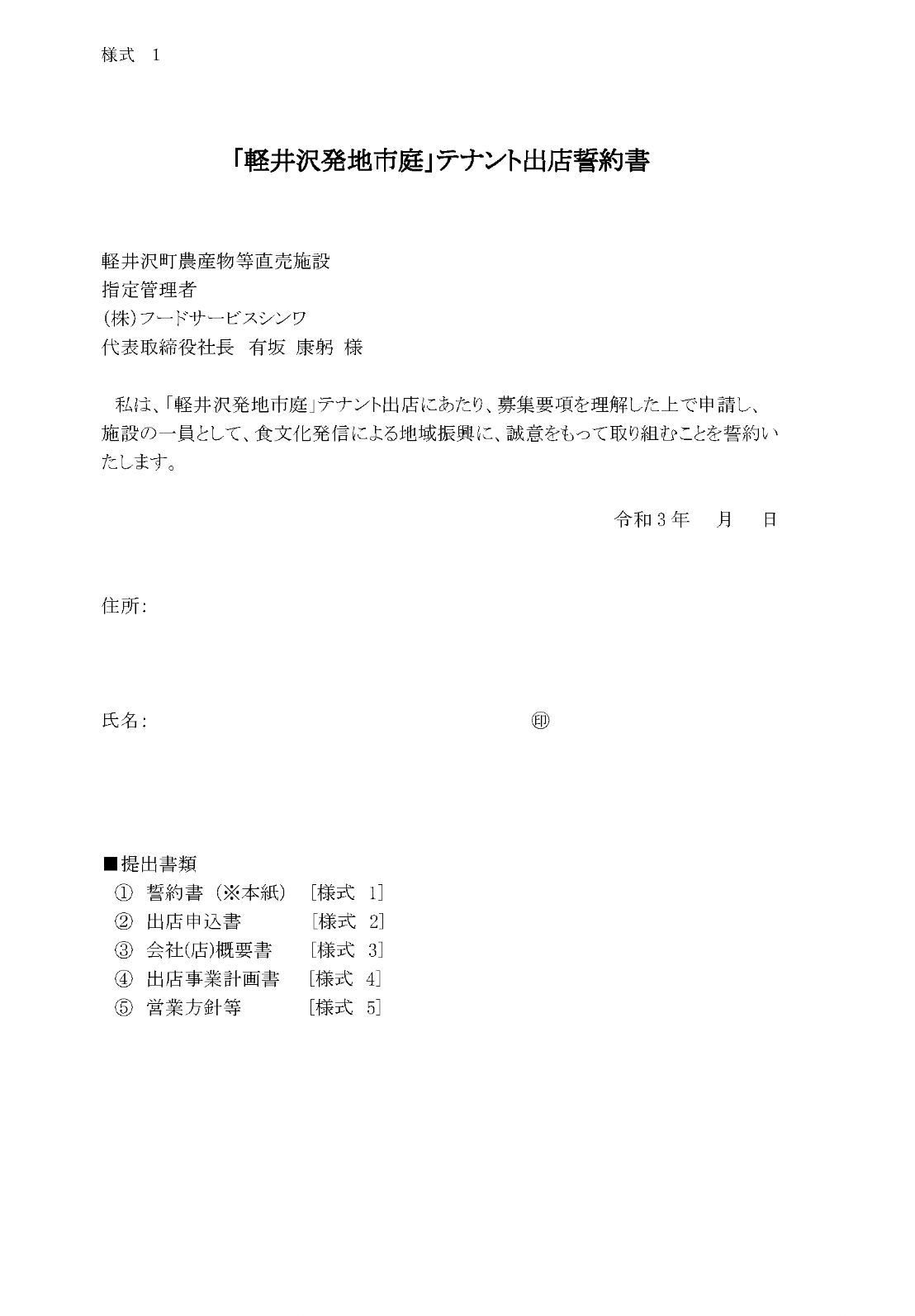 出店契約書 - ho 軽井沢発地市場テナント募集