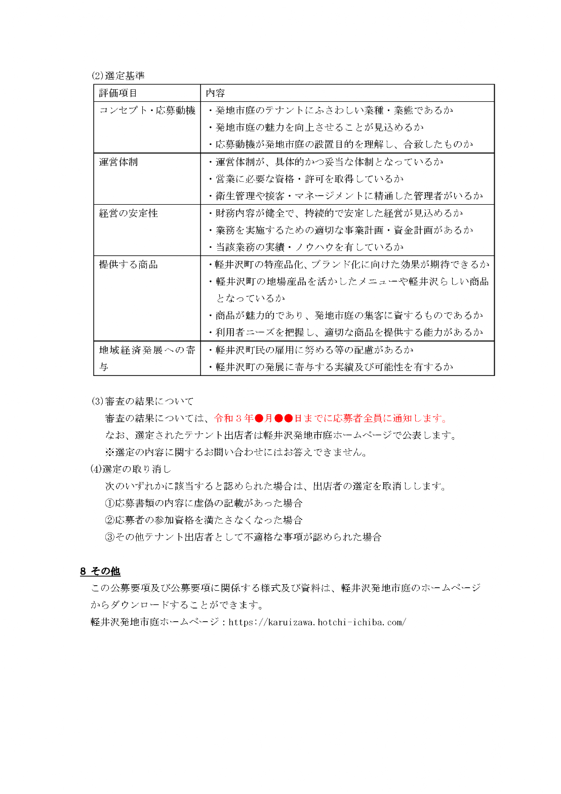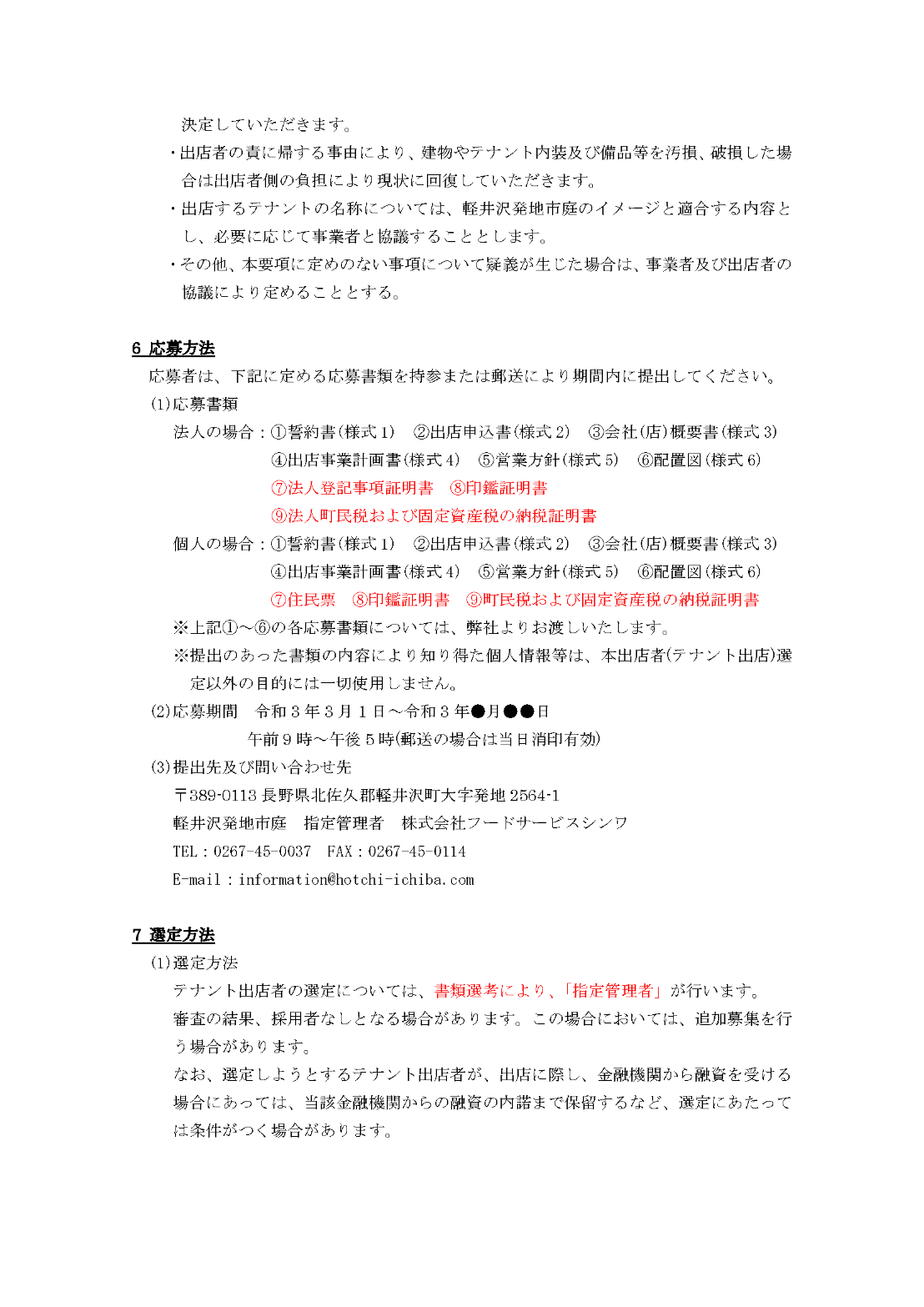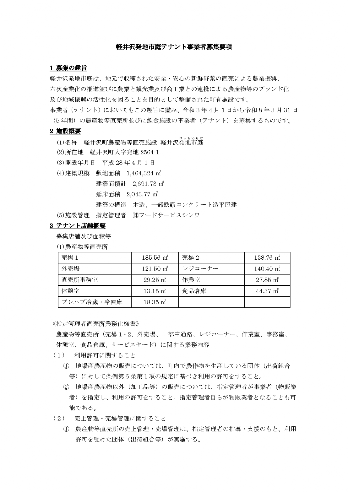 発地市庭テナント募集要項 - ho 軽井沢発地市場テナント募集